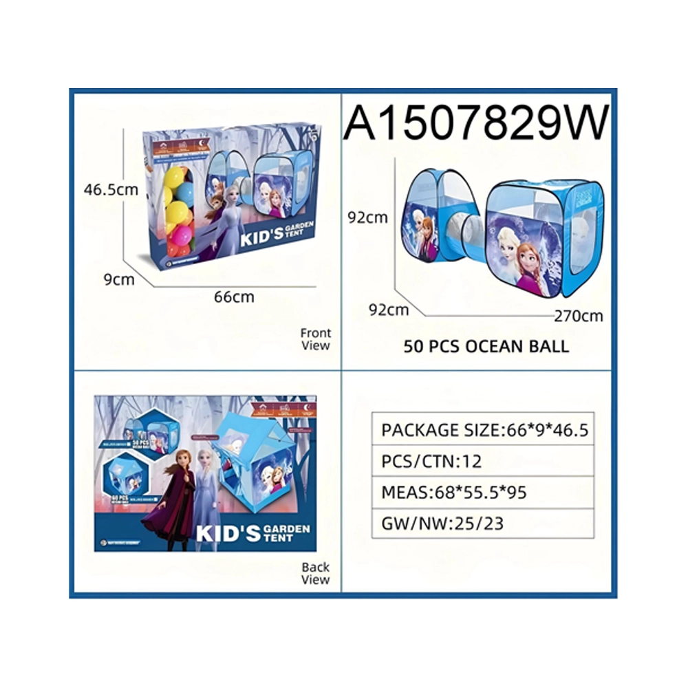 Let your little one’s imagination soar as they join Elsa and Anna in their very own magical castle. This expansive play tent features two distinct play areas—a dome tent and a cube tent—connected by a fun crawl-through tunnel. Perfect for indoor playrooms or outdoor garden adventures, this tent provides a wonderful private space for kids to play, read, and dream. To make the fun even more exciting, this set comes complete with 50 colorful ocean balls, instantly turning one section into a delightful ball pit!