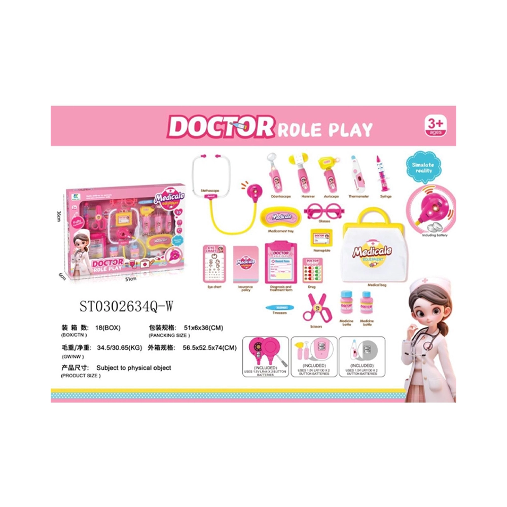 Interactive Electronic Tools: Includes a stethoscope with sound effects, an otoscope, and more that light up during play (batteries included).