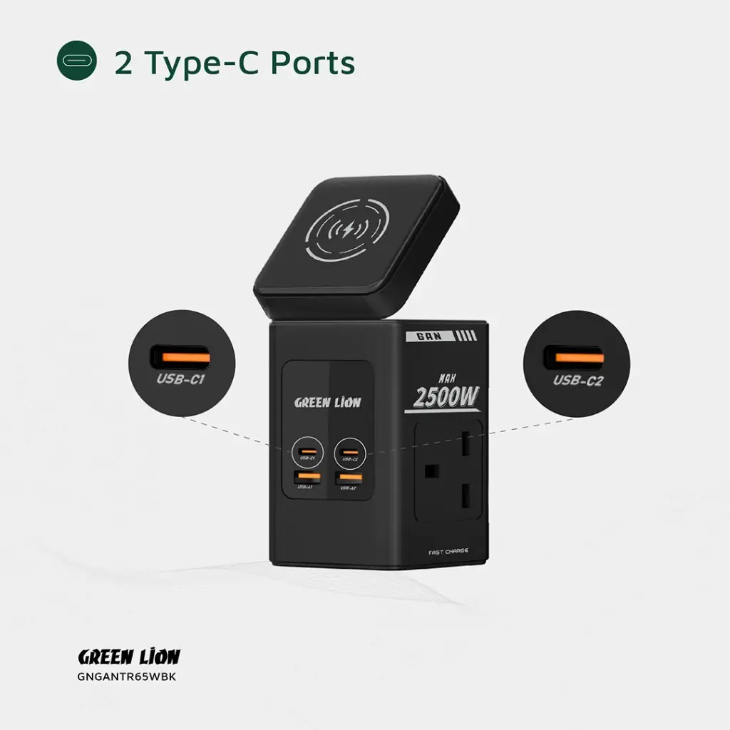 Green Lion GaN 65W Multi Port Travel Adapter – Black