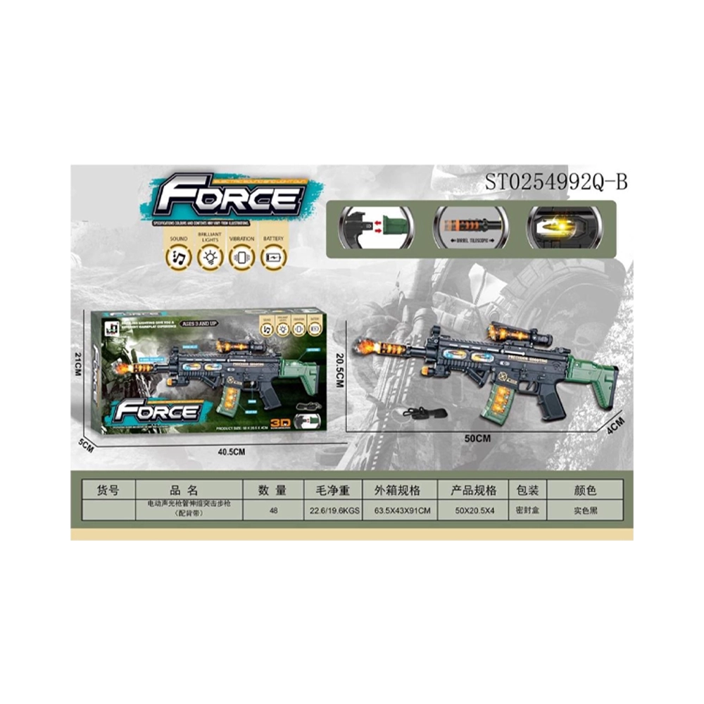 Enjoy hitting targets with this amazing gun!This force gun features realistic design and flexible operating mechanism, designed with kids’ safety in mind, so they can enjoy shooting games to the fullest!Easy to use and very amusing!Realistic sounds!Amazing effects!-Includes: Gun and accessory.
