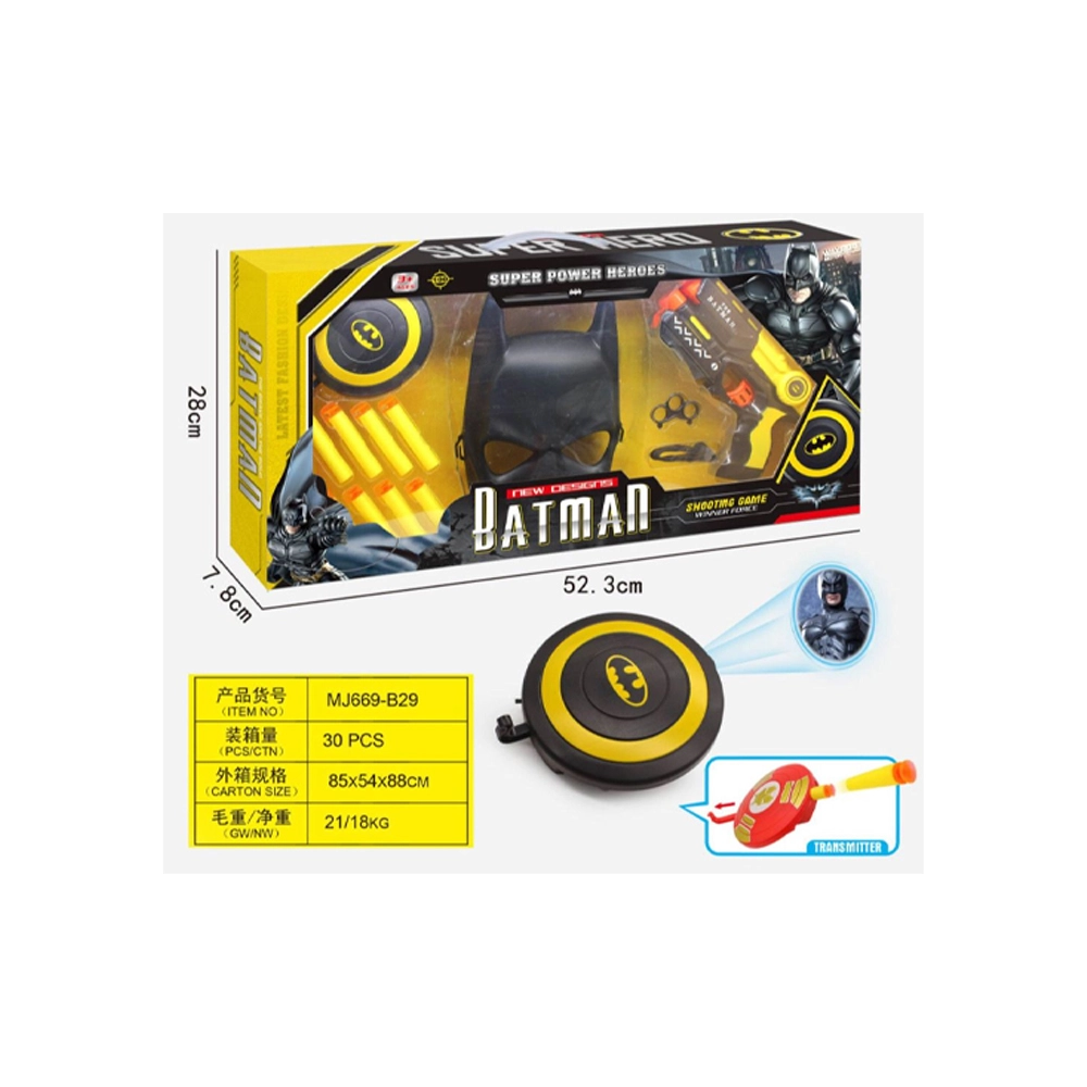 Batman Toy Collection is an exciting superhero role-playing set designed to bring the adventures of Batman to life for children. This collection includes a Batman pistol for firing discs, a mask for immersive role-play, and a shield for protection during playtime adventures. Additionally, children can enjoy other weapons like a whip and a bat, enhancing their imaginative play.