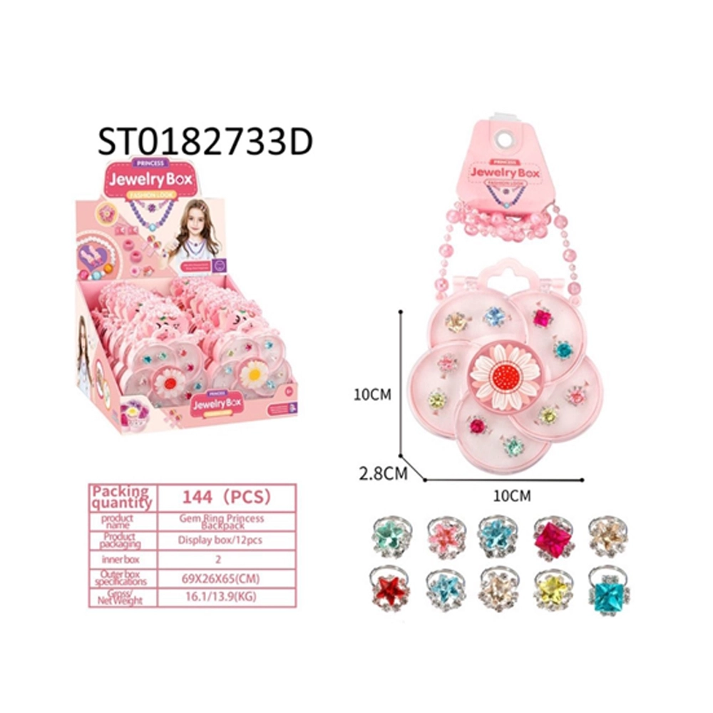 Cartoon Ring Princess Backpack Kit Kids Toy Gem Rings Jewellery for Kids 12pcs/display Box Pretend Play Girl Toy