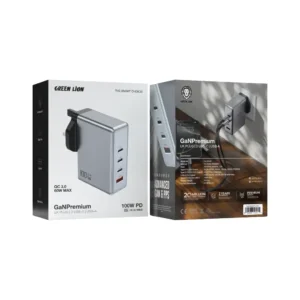 Green Lion GaN Premium UK Plug Wall Charger 100W – Gray