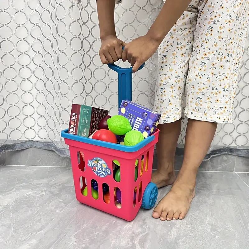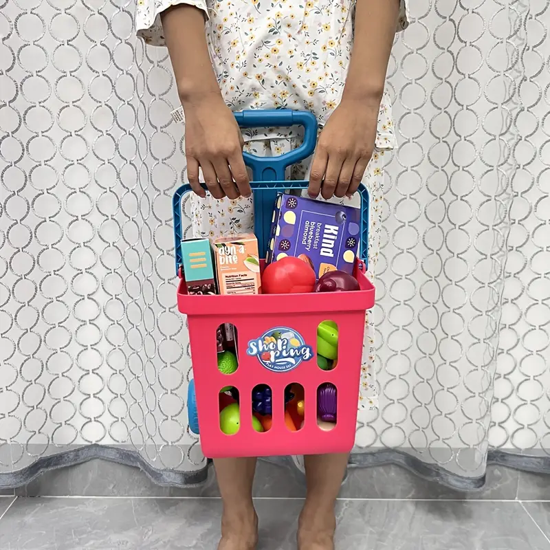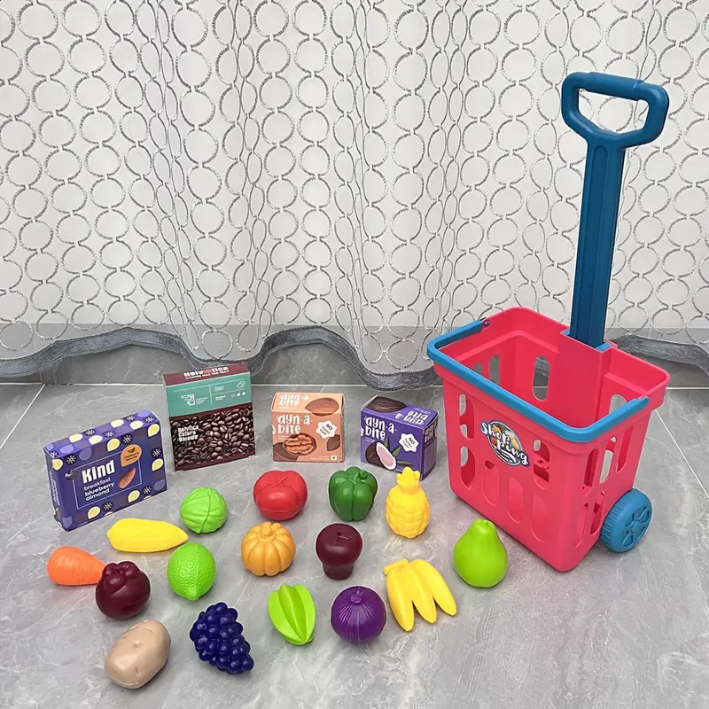 Simulation Children’s Play House Shopping Cart 21pcs Set, including simulated fruits and vegetables, simulated supermarket shopping baskets, birthday, Halloween, Thanksgiving, and Christmas gifts