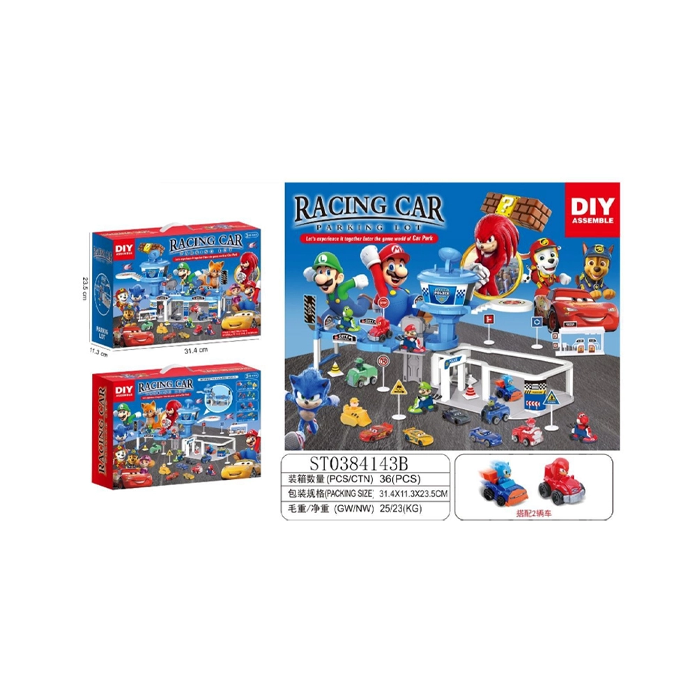 Get ready for the ultimate crossover race! This action-packed DIY Racing Car parking lot brings together an incredible cast of characters from the most popular video games and cartoons all in one box!