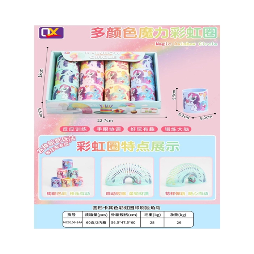 Bring a touch of enchantment to a timeless classic with the Unicorn Magic Rainbow Circle! This beloved coil spring toy, now featuring your favorite magical ponies, is ready to bounce, stretch, and “walk” its way into hours of mesmerizing fun. It’s a simple, captivating toy that brings joy to kids of all ages.
