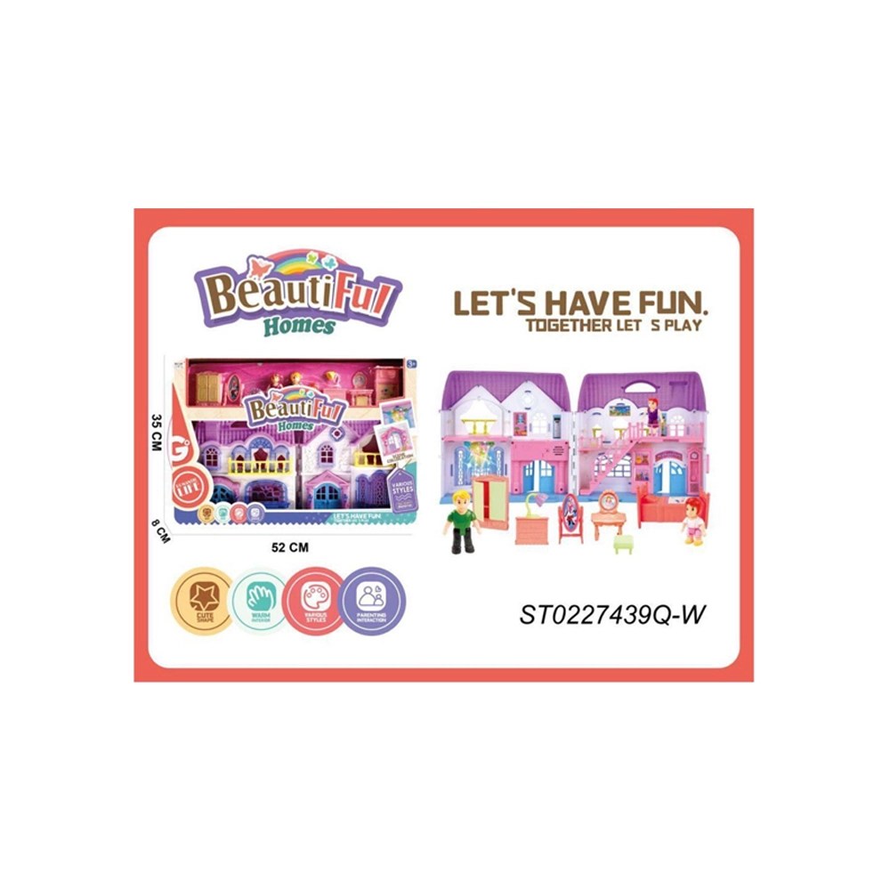 backdrop for your child’s favorite stories. With its cheerful motto, “LET’S HAVE FUN. TOGETHER LET’S PLAY,” this dollhouse encourages interactive and shared playtime.